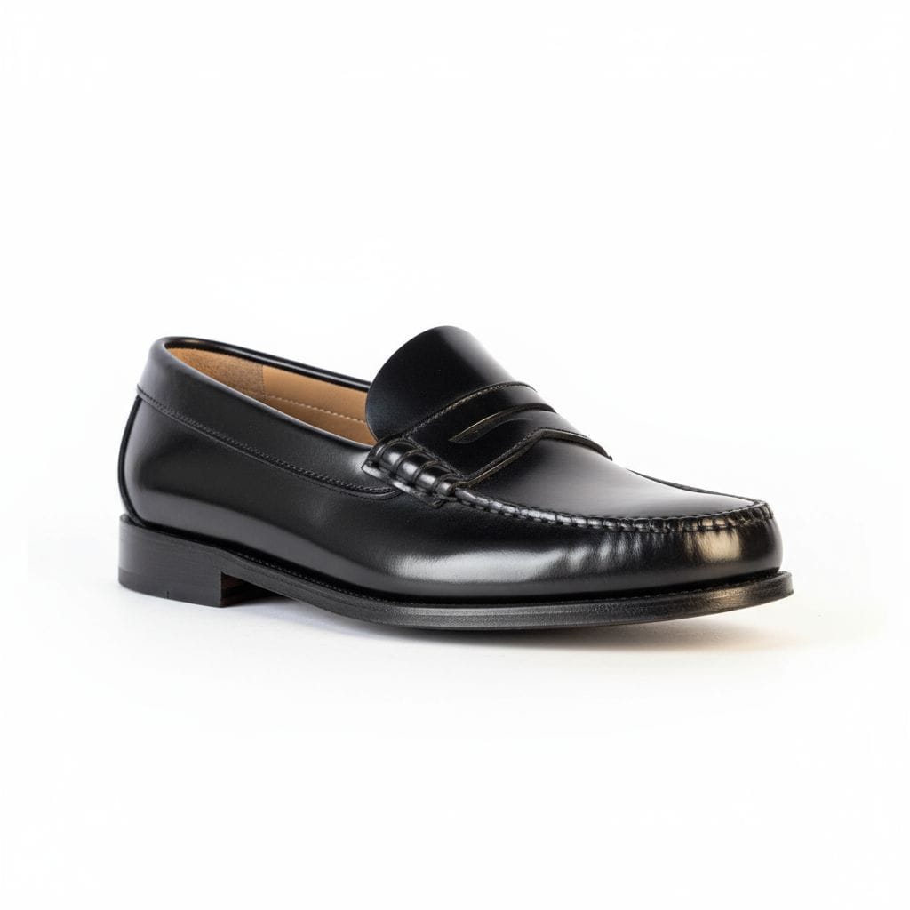 Mocasines clásicos para hombre de gran calidad fabricado en piel de color negro. Cosido a mano. Incorpora un detalle antifaz tipo americano. Suela 100% de cuero
