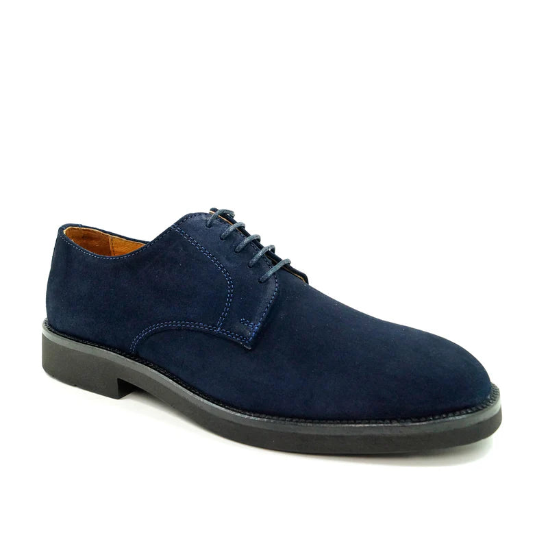 Zapato Blucher (con cordoneras) en ante color marino con piso de goma.