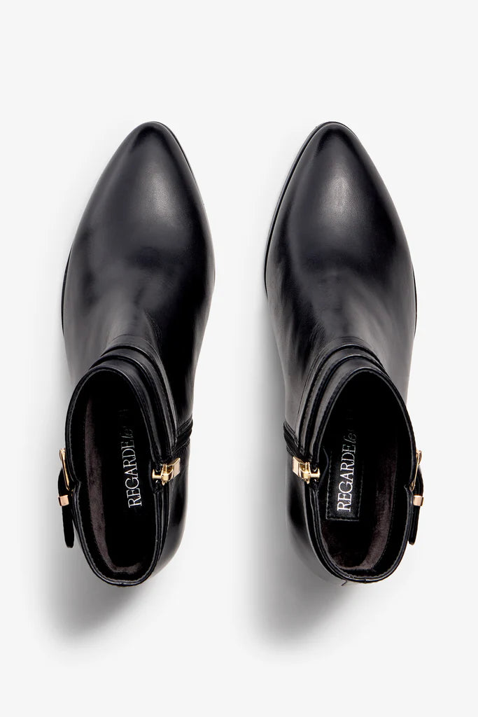 Un botín elaborado en suave piel Delice nueva en color óxido y marrón oscuro. Con un diseño de doble correa y una hebilla dorada, este modelo combina la elegancia clásica con un toque moderno. La suave punta de almendra y la cremallera interior garantizan comodidad, mientras que el tacón cuadrado de 60 mm ofrece una sutil elevación y estabilidad. Un básico versátil con un estilo refinado.