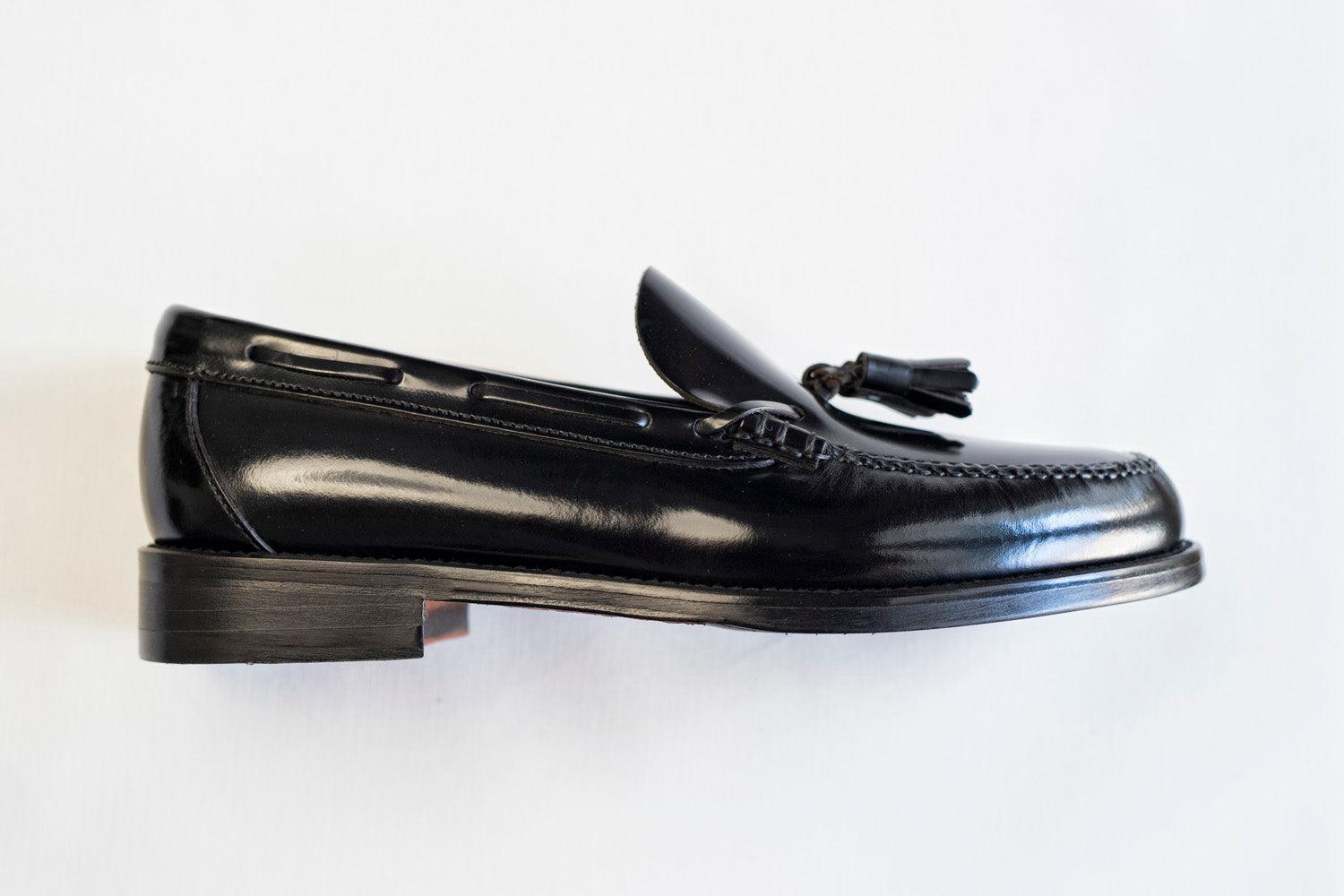 Mocasín de piel con borlas, color negro,