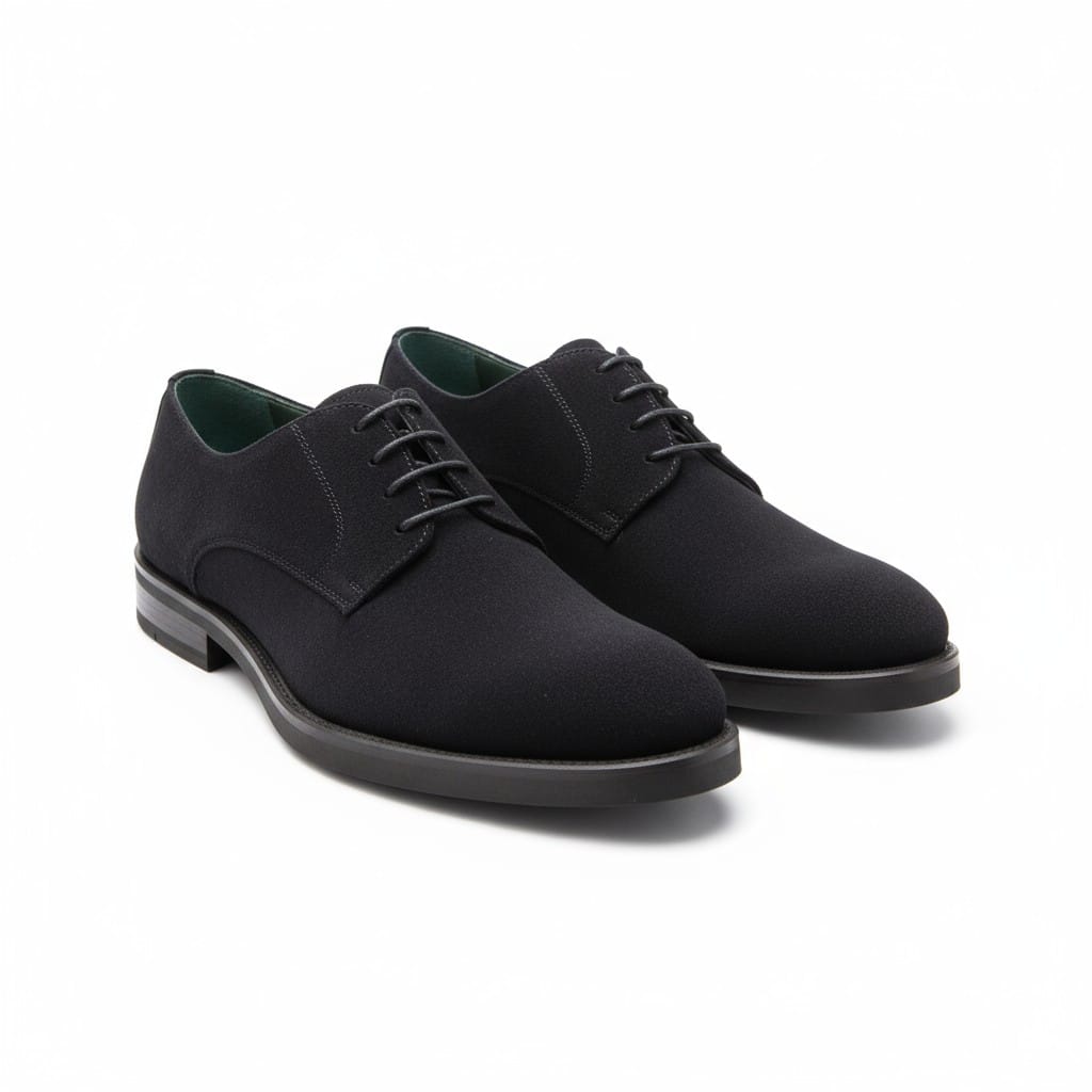 Zapato Blucher de Beviá, fabricado en España, en ante azul marino con suela de goma ligera. Versátil, cómodo y elegante para el día a día.