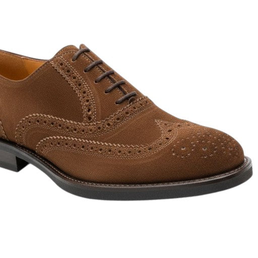 Zapatos Oxford Brogue Lottusse en ante marrón de alta calidad, diseñados para ofrecer una combinación perfecta de elegancia, confort y durabilidad. Estos zapatos de ante destacan por su textura suave y elegante, con detalles perforados en el empeine que aportan un toque clásico y sofisticado.