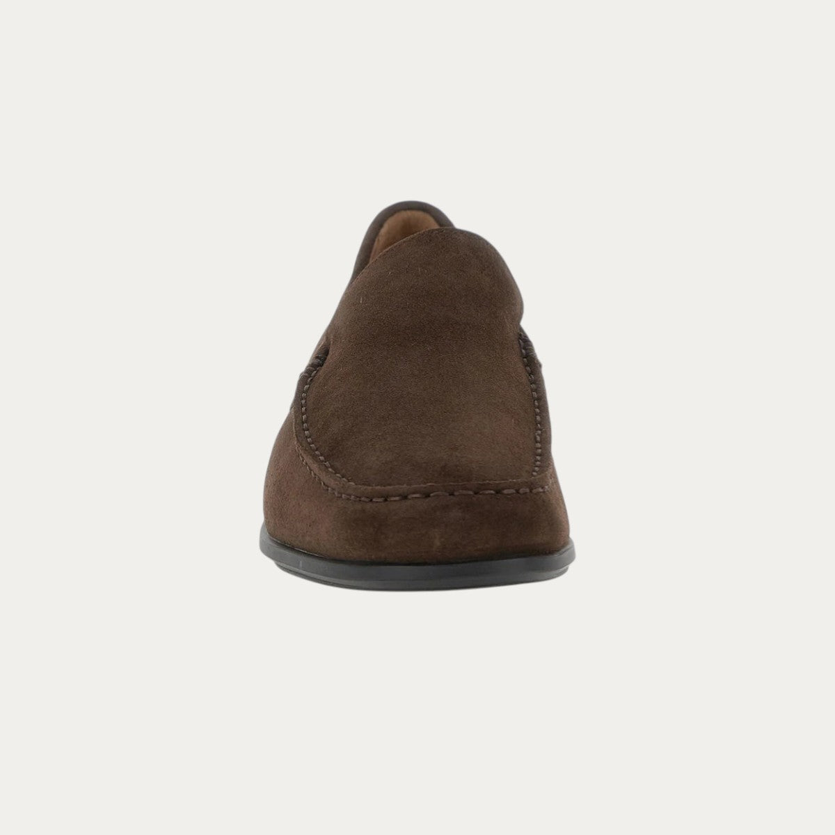 Mocasín da hombre in ante velour marrón con ajuste regular. Mocasín cómodo y práctico, pero al mismo tiempo elegante: un modelo atemporal pensado para combinar confort y sofisticación. La tecnología Blusoft® ofrece pasos suaves y ligeros como los de un gato, con un nivel inigualable de comodidad y amortiguación. Suela de goma, altura del tacón (cm): 2.