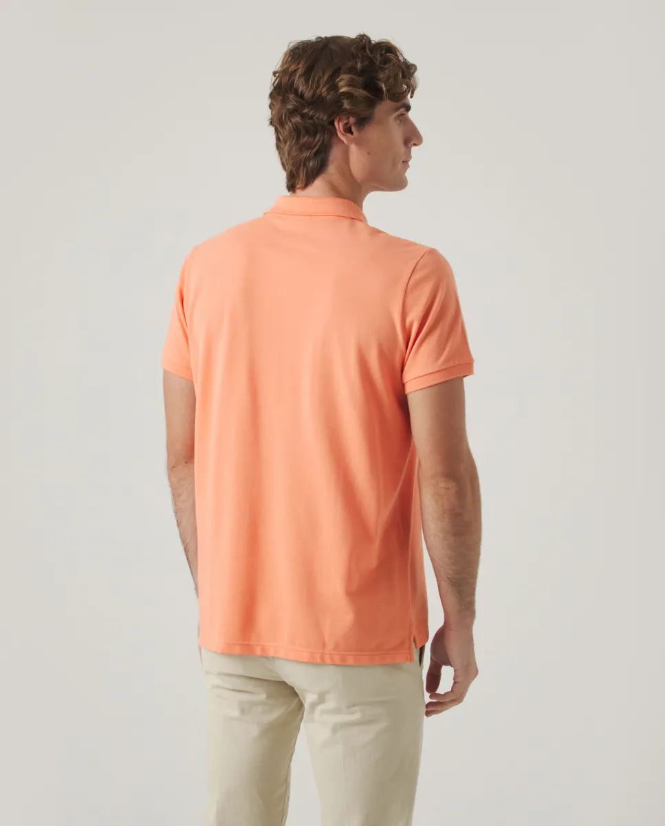 Polo clásico coral de corte regular fit, confeccionado en algodón. Diseño de cuello con cierre de botones personalizados y manga corta. Moto bordada a contraste en el torso. Fabricado en Portugal.